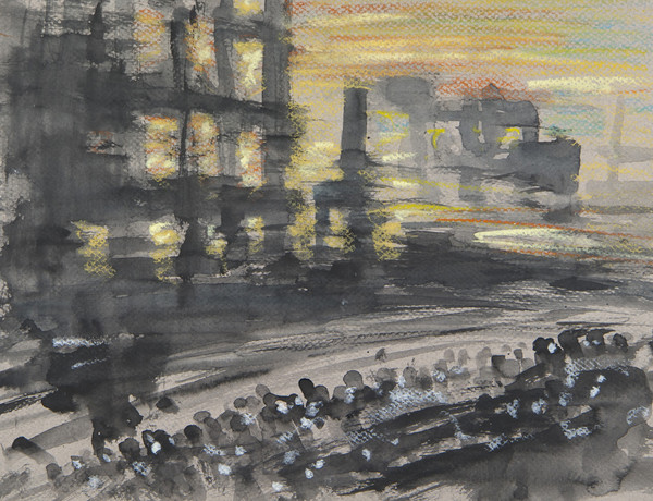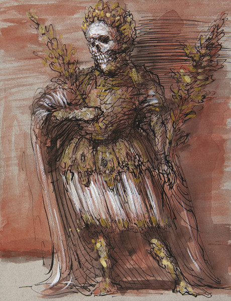 61 Zeichnungen von Béla Faragó, Tusche, Aquarell, Kreide und Buntstift auf Papier, 2010, 32,5 x 25 cm werden in einer Ausstellung in St. Sebald in Zusammenarbeit mit der Galerie Destillarta, Buchschwabacher Mühle zum Thema "Totentanz" präsentiert.