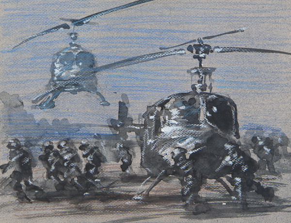 Helikoptern stürmend. Sie machten Gefangene, warfen Bomben, hinterließen